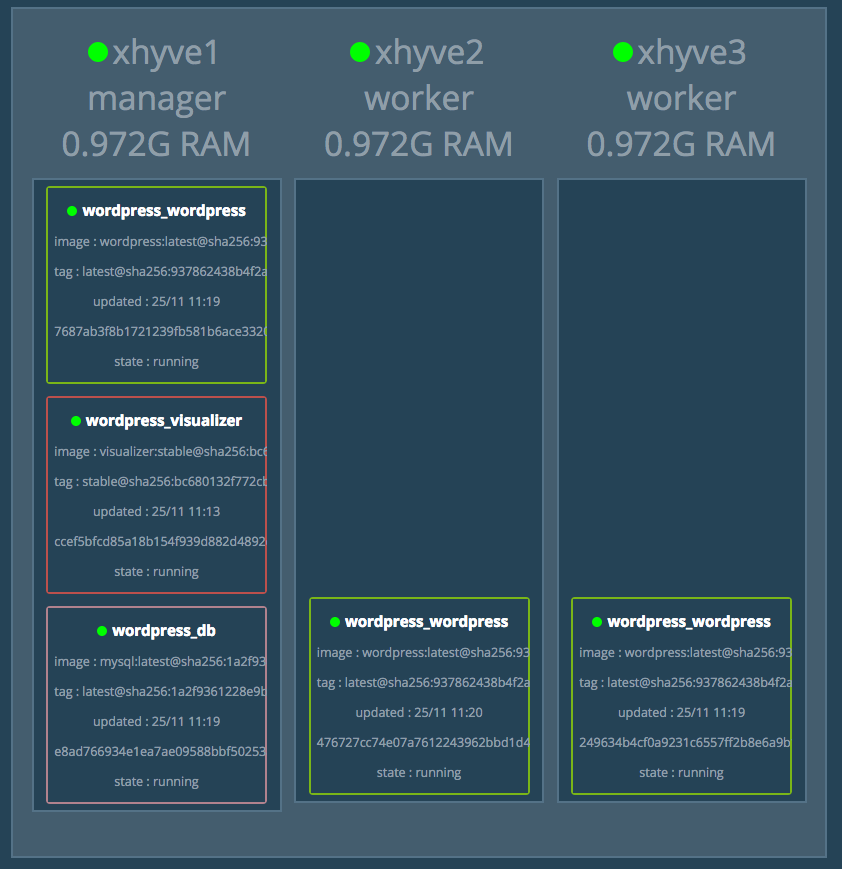 在 Swarm 集群管理节点新建该文件,其中的 visualizer 服务提供一个可视化页面,我们可以从浏览器中很直观的查看集群中各个服务的运行节点。